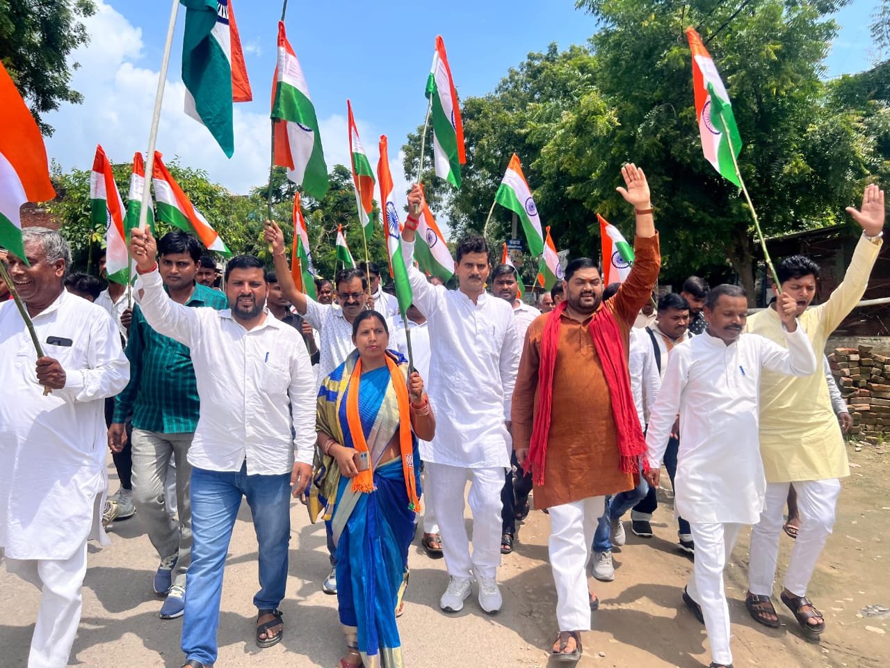 गिरजा शंकर गुप्ता/अंबेडकर नगर। 78 वें स्वतंत्रता दिवस पर भाजपा शीर्ष नेतृत्व के आवाहन पर जनपद में भाजपा जिलाध्यक्ष त्रयंबक तिवारी के मार्गदर्शन एवं जिला संयोजक बाबा राम शब्द यादव के संयोजन में भाजपा ने मंडलों में भारत माता की जय,वंदे मातरम की गगनभेदी नारे के साथ सैकड़ों की संख्या में लोगों के साथ तिरंगा यात्रा निकाल कर जन जन में देश भक्ति की अलख जगाते हुए अपने घरों पर तिरंगा फहराने का संदेश दिया।