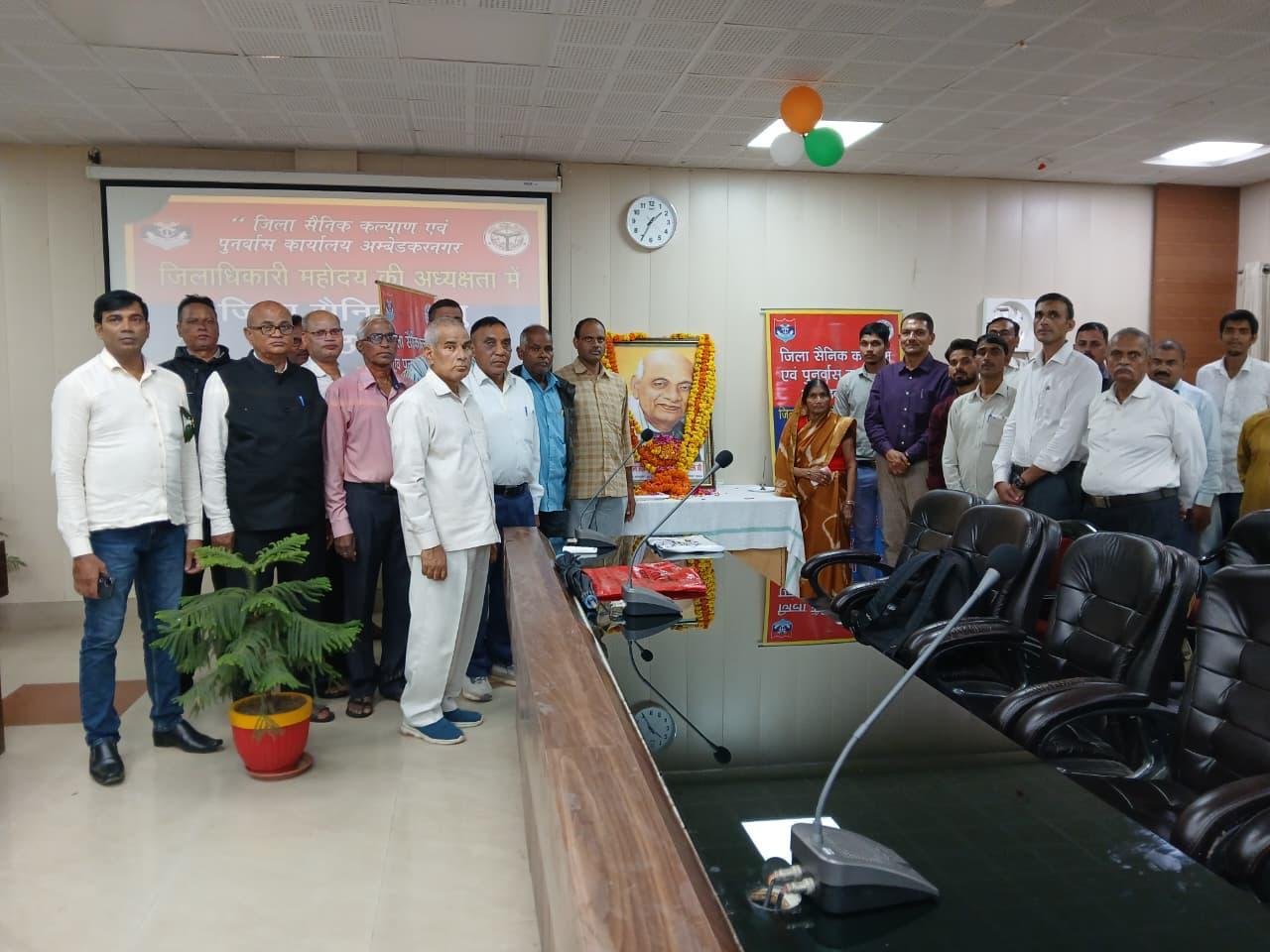 अंबेडकर नगर।(आशा भारती नेटवर्क) सैनिक बन्धुओं की बैठक कलेक्ट्रेट सभागार में जिलाधिकारी महोदय के निर्देशानुसार ए०डी०एम० न्यायिक एवं संयोजक कर्नल बी०के० शुक्ला (अ०प्रा०) द्वारा संचालित किया गया।