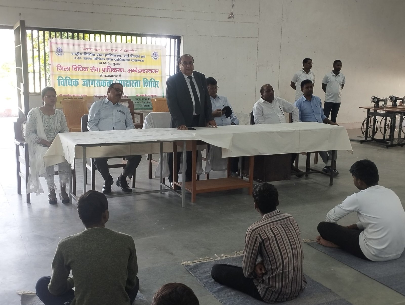 अंबेडकर नगर। (आशा भारती नेटवर्क) उ०प्र० राज्य विधिक सेवा प्राधिकरण, लखनऊ द्वारा प्रेषित प्लान ऑफ एक्शन 2025-26 के अनुपालन में श्री चन्द्रोदय कुमार, माननीय जनपद न्यायाधीश / अध्यक्ष, जिला विधिक सेवा प्राधिकरण, अम्बेडकरनगर के निर्देशानुसार आज दिनांक 09.11.2025 को जिला कारागार अम्बेडकरनगर में विधिक सेवा सप्ताह का शुभारम्भ एवं विधिक सेवा दिवस के अवसर पर विधिक सेवाओं के विषय में व्यापक जागरूकता प्रदान किये जाने के कम में श्री भारतेन्दु प्रकाश गुप्ता, अपर जिला जज / सचिव, जिला विधिक सेवा प्राधिकरण, अम्बेडकरनगर द्वारा विधिक साक्षरता शिविर का आयोजन किया गया। इस विधिक साक्षरता शिविर में श्री भारतेन्दु प्रकाश गुप्ता, अपर जिला जज / सचिव, जिला विधिक सेवा प्राधिकरण, अम्बेडकरनगर, श्री आलोक सिंह, जेलर, श्री राजेश कुमार तिवारी, डिप्टी चीफ, लीगल एड डिफेन्स काउन्सिल, श्री सूर्यभान सरोज, डिप्टी जेलर, श्री तेजवीर सिंह, डिप्टी जेलर, कारागार चिकित्सालय एवं जि०वि०से० प्रा० के कर्मचारीगण पी०एल०वी० तथा जिला कारागार अम्बेडकरनगर के कर्मचारीगण एवं बन्दियों एवं महिला बन्दियों द्वारा प्रतिभाग किया गया।