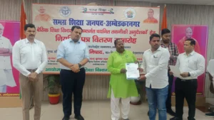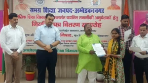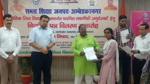 अंबेडकर नगर 11 मार्च 2026।(आशा भारती नेटवर्क) प्रदेश सरकार के महत्वाकांक्षी मिशन रोजगार के अंतर्गत युवाओं को रोजगार उपलब्ध कराने तथा विद्यालयी शिक्षा में कौशल आधारित गतिविधियों को बढ़ावा देने के उद्देश्य से संचालित “लर्निंग बाई डूइंग” कार्यक्रम के तहत चयनित 26 नवनियुक्त तकनीकी अनुदेशकों को आज माननीय विधायक कटेहरी श्री धर्मराज निषाद, जिलाधिकारी श्री अनुपम शुक्ला तथा मुख्य विकास अधिकारी श्री आनंद कुमार शुक्ला द्वारा संयुक्त रूप से नियुक्ति पत्र वितरित किए गए।