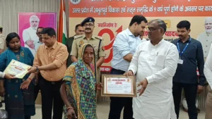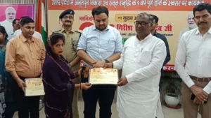 इस अवसर पर मा. मंत्री जी द्वारा विभिन्न योजनाओं के लाभार्थियों को प्रमाण पत्र, स्वीकृति पत्र, प्रतीकात्मक चाभी सौंपा गया।