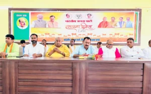 डॉ श्यामा प्रसाद मुखर्जी एवं पण्डित दीनदयाल उपाध्याय के चित्र पर माल्यार्पण के साथ जिला कार्यालय में भाजपा जिलाध्यक्ष त्रयंबक तिवारी की अध्यक्षता एवम् जिला महामंत्री दिलीप पटेल देव के संचालन में सम्पन्न हुई बैठक को एम एल सी डॉ हरिओम पाण्डेय, विधायक धर्म राज निषाद,भाजपा के पूर्व जिलाध्यक्ष डॉ मिथिलेश त्रिपाठी, कपिल देव वर्मा,राम प्रकाश यादव, यमुना प्रसाद चतुर्वेदी, रमा शंकर सिंह, जिला पंचायत अध्यक्ष श्याम सुंदर वर्मा, ब्लॉक प्रमुख संजय सिंह,प्रतिनिधि आनंद वर्मा, पूर्व विधायक त्रिवेणी राम, जय राम विमल,अनीता कमल, चेयर मैन ओमकार गुप्ता, जिला उपाध्यक्ष डॉ राना रणधीर सिंह, डॉ रजनीश सिंह, रमेश चंद्र गुप्ता,जिला महामंत्री बाबा राम शब्द यादव, अमरेंद्र कांत सिंह, सुरेश कन्नौजिया,जिला मीडिया प्रभारी बाल्मीकि उपाध्याय, चंद्रिका प्रसाद, विनय पाण्डेय, पंकज वर्मा, आदर्श चौधरी,जावेद मलिक, अखण्ड प्रताप वर्मा, धीरेंद्र प्रताप सिंह, सतपाल पटेल आदि ने सम्बोधित किया।
