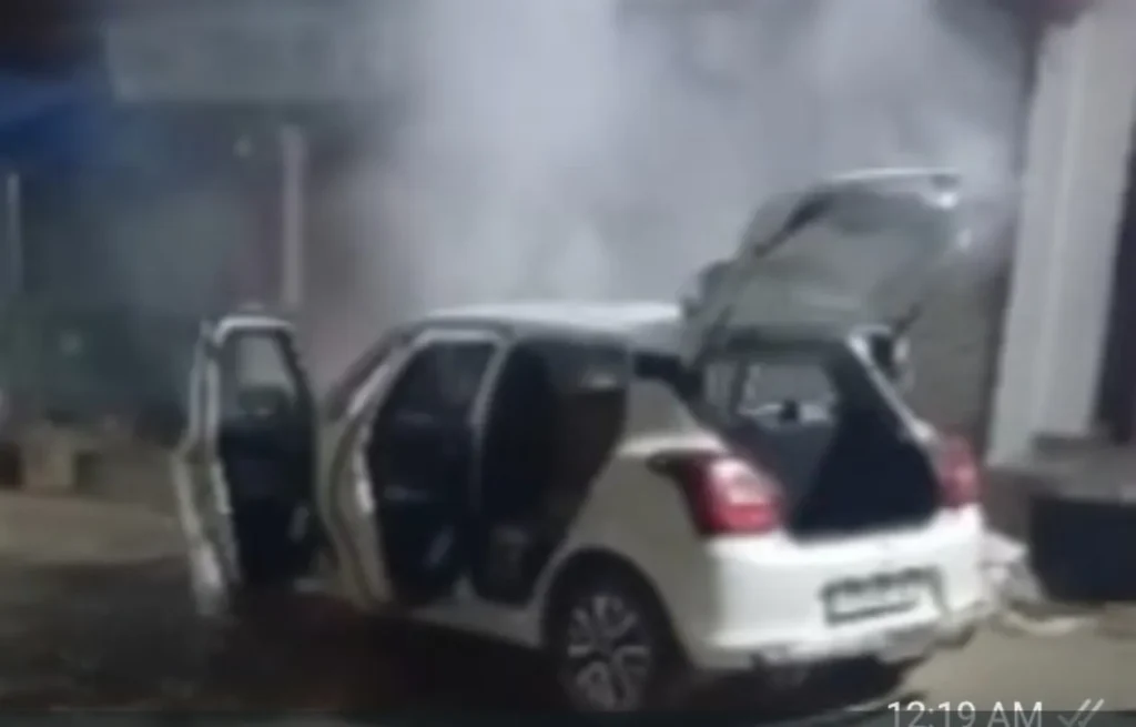 शहजादपुर गांधी चौक के पास चलती कार में लगी आग