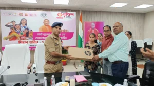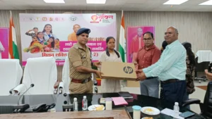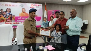 अंबेडकर नगर 18 अप्रैल 2026। कलेक्ट्रेट सभागार में अपर पुलिस अधीक्षक श्याम देव एवं जिला प्रोबेशन अधिकारी राकेश कुमार की उपस्थिति में नारी सुरक्षा, सम्मान एवं स्वावलंबन के उद्देश्य से समर्पित मिशन शक्ति–5.0 (चरण–2) के अंतर्गत एक प्रभावी जागरूकता कार्यक्रम का आयोजन किया गया। कार्यक्रम में विभिन्न योजनाओं के लाभार्थियों को सम्मानित करते हुए कन्या सुमंगला योजना के तहत स्वीकृति पत्र वितरित किए गए। साथ ही कोविड-19 के दौरान अपने माता-पिता को खोने वाले एवं वर्तमान में 9वीं कक्षा उत्तीर्ण कर चुके स्पॉन्सरशिप योजना के लाभार्थी बच्चों को उच्च शिक्षा में सहयोग हेतु लैपटॉप प्रदान किए गए। जिला प्रोबेशन अधिकारी ने अवगत कराया कि इन बच्चों के समुचित पालन-पोषण एवं भरण-पोषण के लिए उन्हें स्पॉन्सरशिप योजना के अंतर्गत प्रति माह ₹4000 की आर्थिक सहायता भी प्रदान की जा रही है।