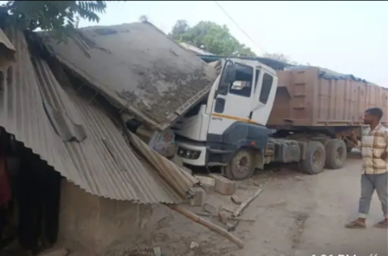 अनियंत्रित कंटेनर दुकान में घुसी किया तहस नहस